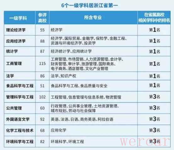 根据教育部发布的全国高校学科评估结果,优势学科数居浙江省属高校第3位。统计学、工商管理、应用经济学、食品科学与工程、法学、理论经济学等6个一级学科居浙江省属高校第1位