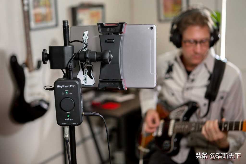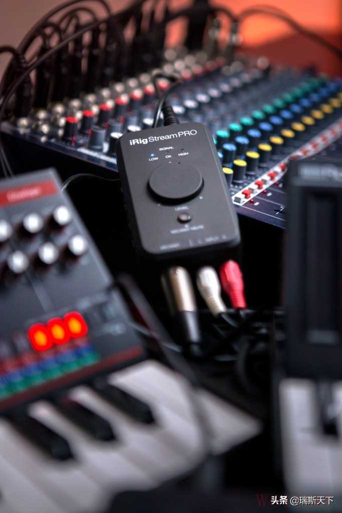 Irig Stream pro是IK Multimedia 最近为手机直播而推出的便携小声卡。为了适应更专业的音频连接,这次升级机身尺寸加大了一圈,像XLR混合TRS这样的专业接口也能下放,前置放大器也有了。这样一来,乐器输入和电容麦就能随时切换。外接电钢或者DJ台这类的音源设备,用RCA莲花头接口就可以解决弹唱的问题。