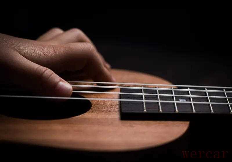 掌握单个和弦按法后,要练转换练习。练习谱里C大七占前两拍,弹5321;D9占后两拍,弹4321;Em占全小节四拍,弹432312——注意1弦后面的延长线是二分音符,要多弹一拍,不能空着。练习时要关注节奏:八分音符是一拍两个音,比如“大大”比四分音符快一倍,二分音符是一拍一个音但占两拍,得弹够时长。刚开始转换可能不熟练,比如从C大七转D9时,手指会卡顿,这很正常。可以先把每个和弦的手型练到肌肉记忆,确保每根弦都发出干净声音,再慢慢加快转换速度。如果弹出来的声音和示范不一样,先检查琴弦有没有调准,再看看是不是用了几十块的“烧火棍”——新手可以先凑合用,但有条件最好换把音准好的琴。