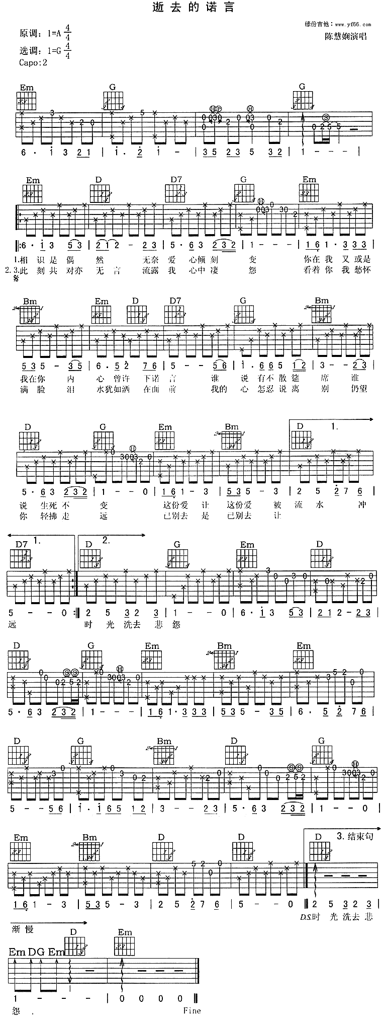 - 《逝去的诺言》的节奏比较舒缓,吉他弹奏时要注意节奏的稳定性和连贯性。