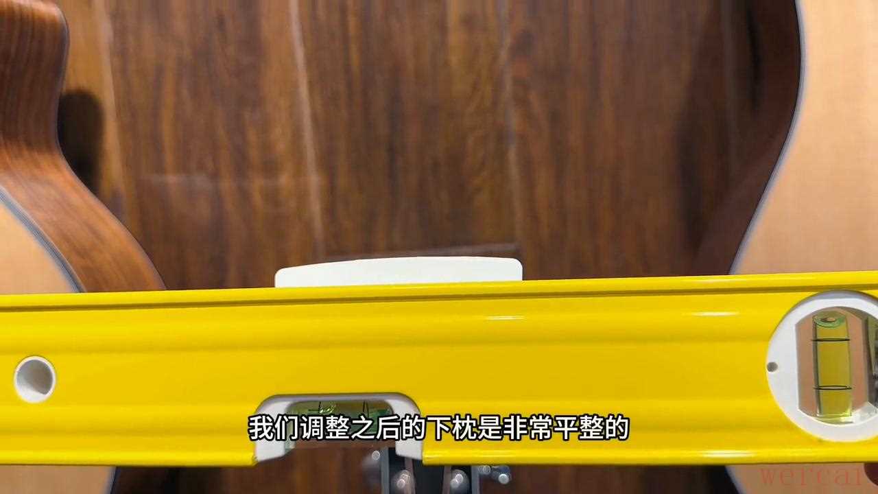 调整后的下枕非常平整,可以看到底部有一个拾音器的压电条。因此,需要将下枕底部调平,以获得更加均衡的拾音输出。调整上枕时,四弦不用动,继续调整下枕,检查拾音器的均衡度。最终,我们成功地完成了弦距调整,手感非常舒适。希望客户会喜欢它。感谢大家的关注。