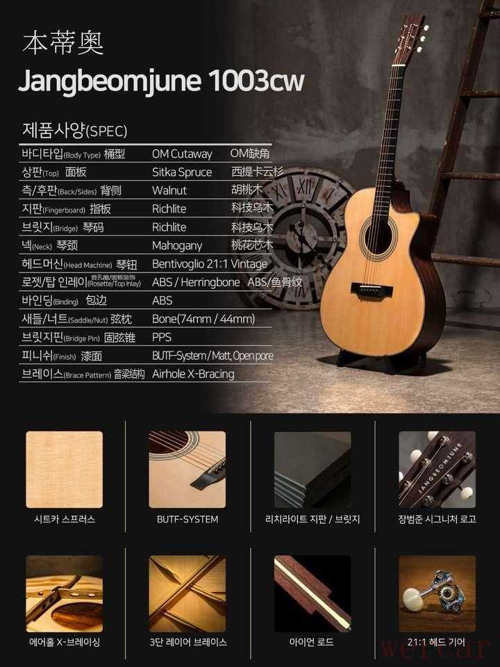 - 本蒂奥J1003合板吉他:专为手小用户设计的入门琴,窄琴颈搭配超低弦距,握持轻松,按弦顺滑,有36寸MINI款和41寸标准款可选,适合手小的女生、青少年新手。