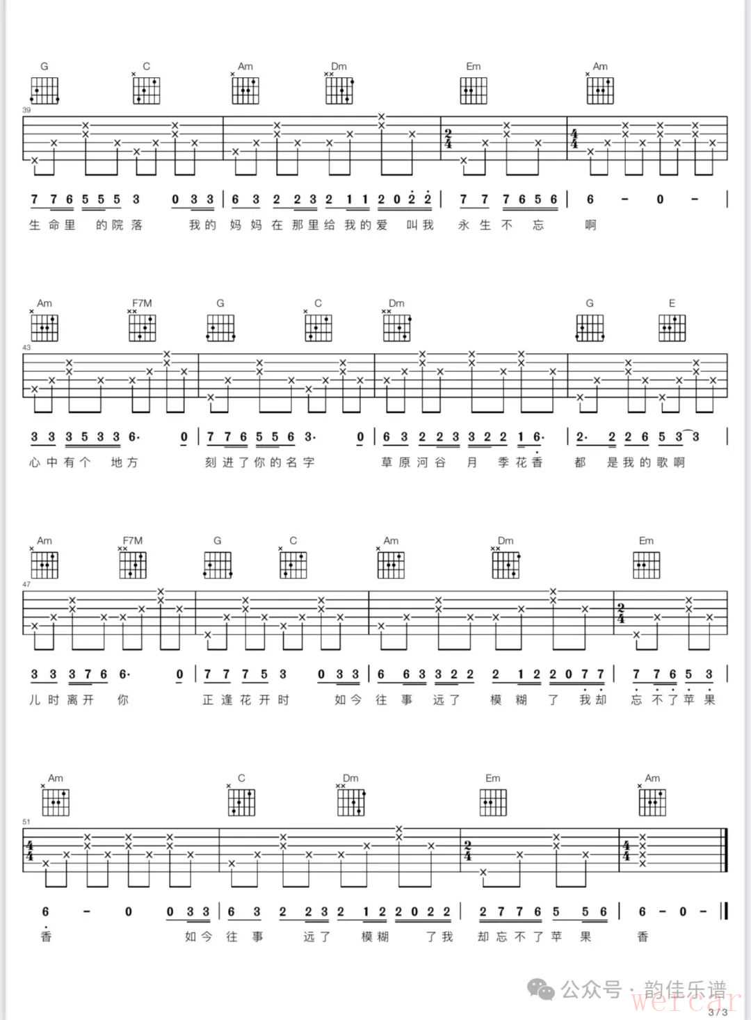 标 题:苹果香(F#,C调和弦)吉他弹唱谱