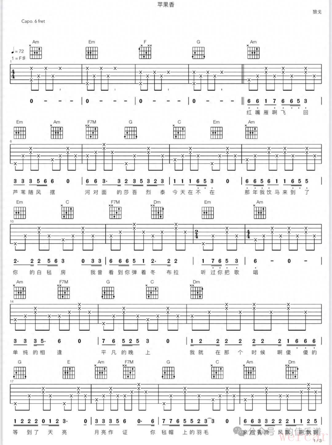 苹果香(F#,C调和弦)吉他弹唱谱,狼戈