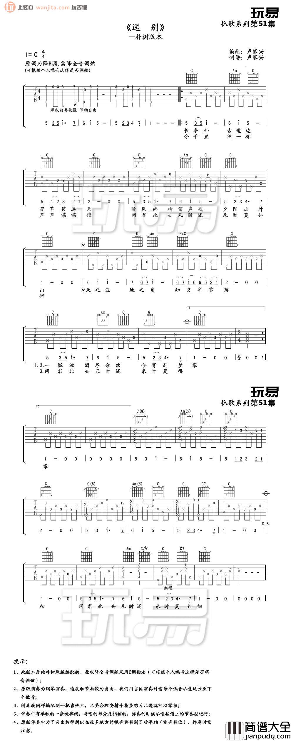 - 《送别的》中有一些和弦转换,需要提前练习,确保在演唱时能够流畅地转换。