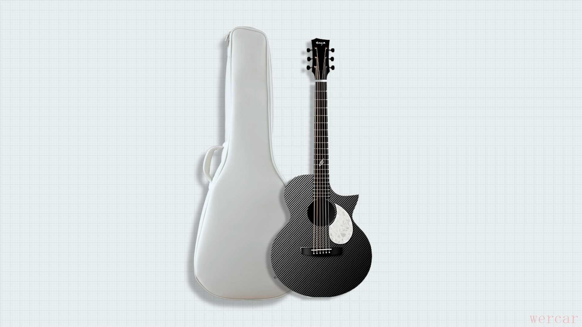 恩雅这次随琴附赠的是一只纯白色的包,PU材质,非常光滑,看起来有种空气质感,和里面装的纯黑吉他形成了一个鲜明的对比。