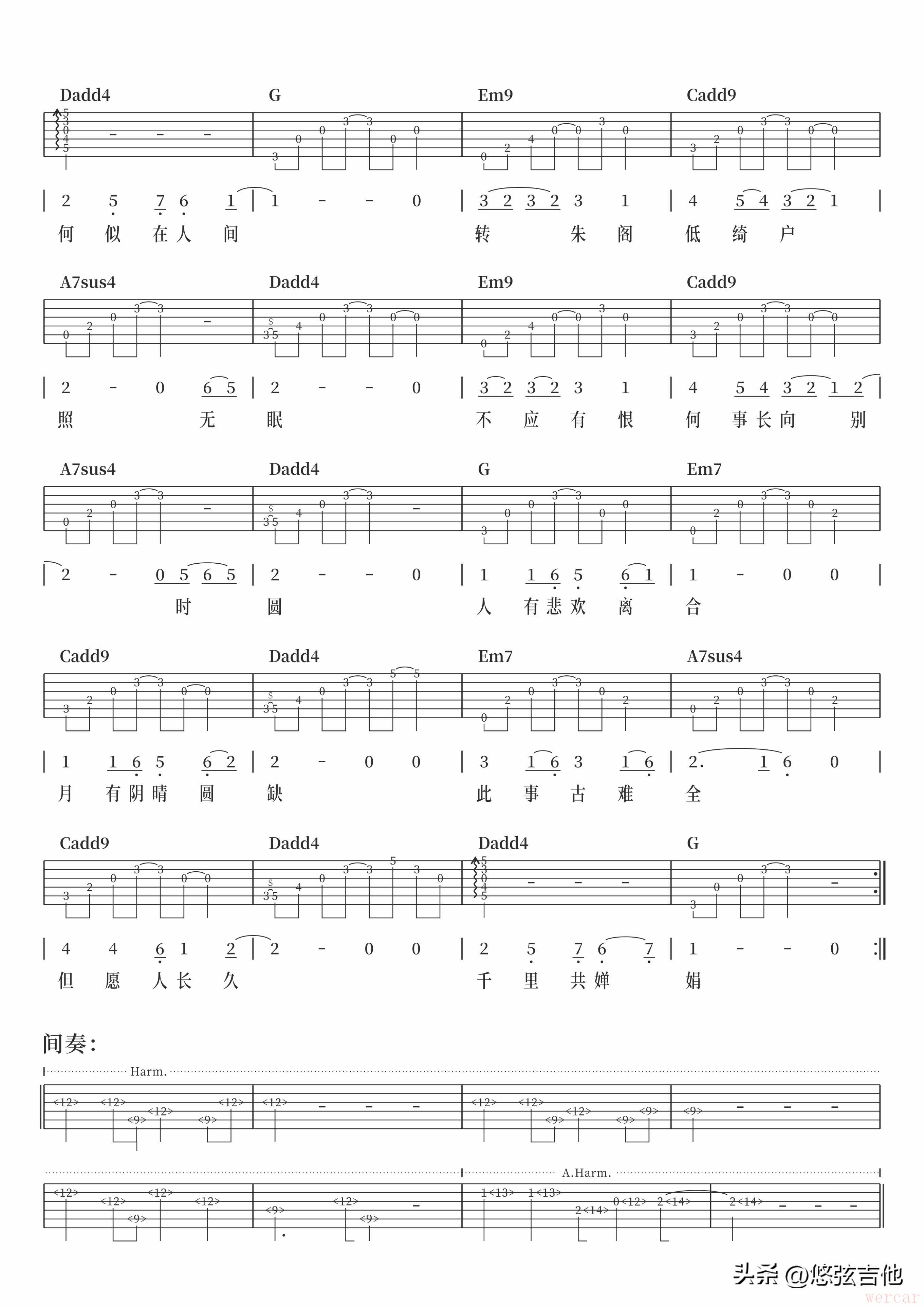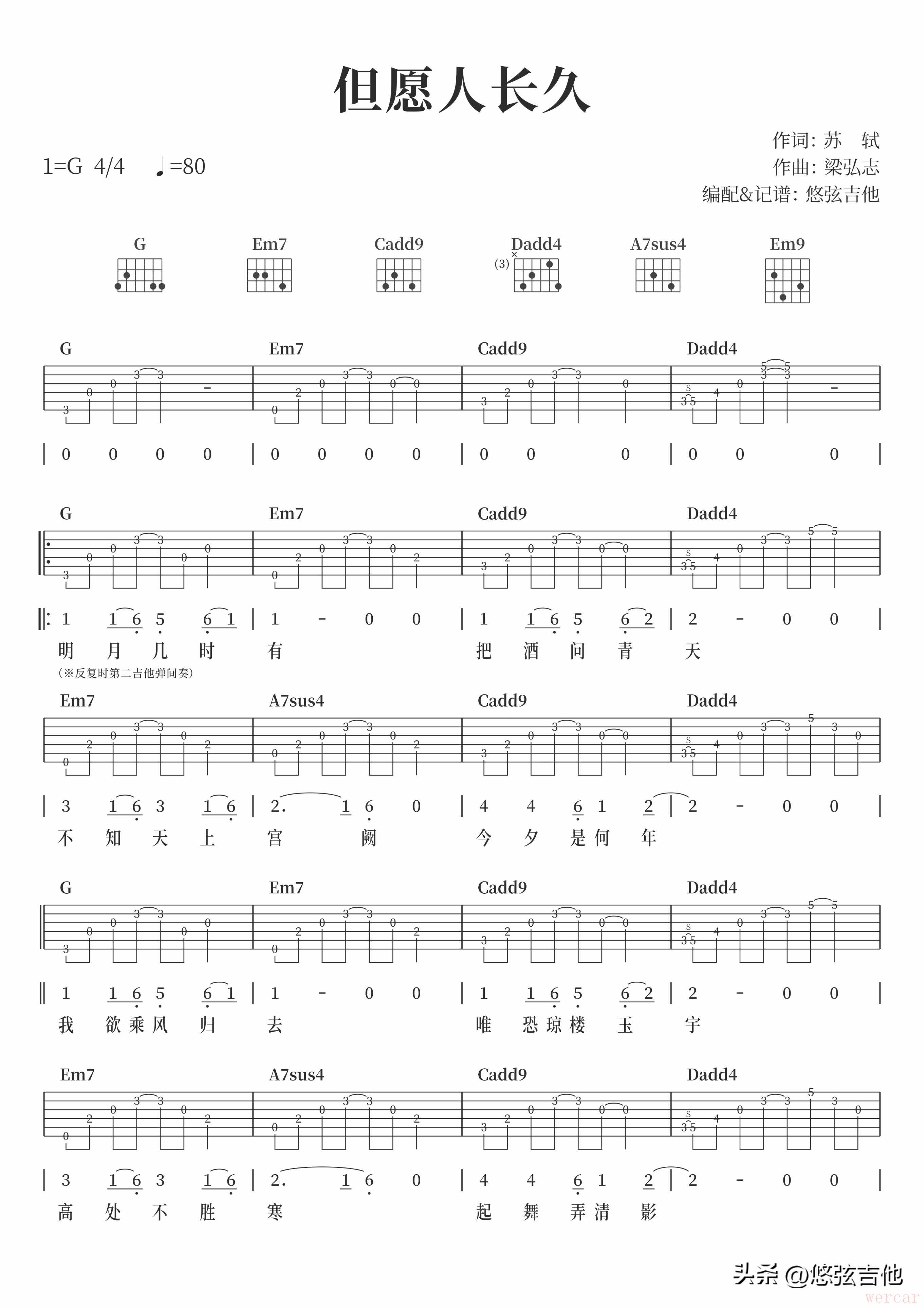 但愿人长久吉他弹唱曲谱免费分享攻略大全