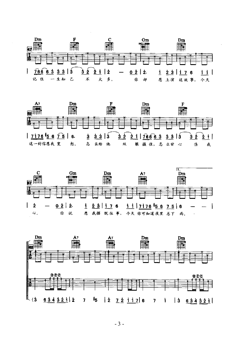 1. "和弦转换":这首歌曲的和弦转换比较频繁,需要练习熟练,确保在弹唱时和弦转换流畅,不要出现断音或卡顿。