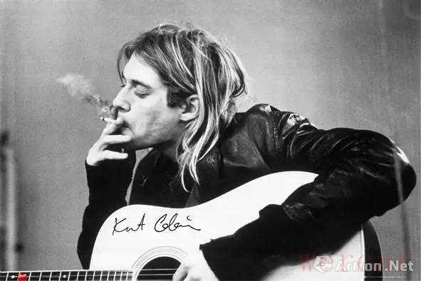 还有一位著名吉他手叫做科特·柯本(Kurt Cobain),他曾位列《滚石》杂志最伟大的吉他手TOP 100第17位。作为左撇子,科特·柯本曾亲自给自己设计吉他,柯本日记中就记载了他自行设计的吉他手稿。
