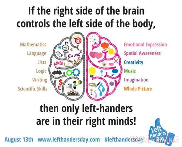 1975年,美国有一群在生活中习惯使用左手的人创立了一个名叫“左撇子国际”的团体,并在第二年的8月13日宣布创立“国际左撇子日”,希望以此唤起人们对于右手为主的社会中存在的少部分左撇子人群给予更多的关注。