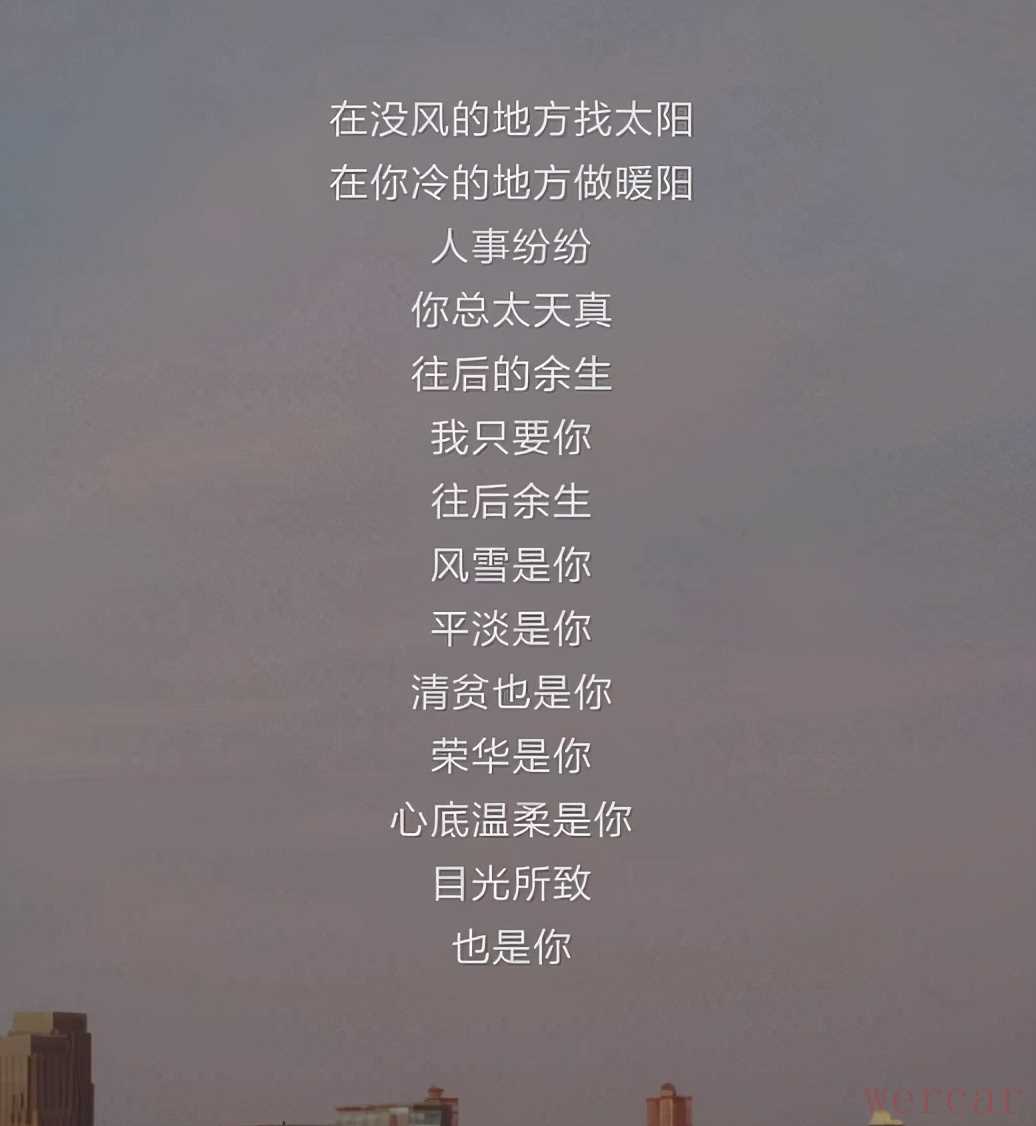 说起今年夏天听到的最多的一首歌应该可以算《往后余生》了吧,即使是走在丽江、大理的青石板路上,依旧能够听到路两旁的小酒馆里传来有人弹着吉他唱《往后余生》。《往后余生》这首歌大火,马良用简单明了的歌词,生动地刻画出了一幅,一双恋人从清晨到傍晚,从青丝到白发携手相伴的画面。抒发的是 '往后余生,我只要你'的心意。