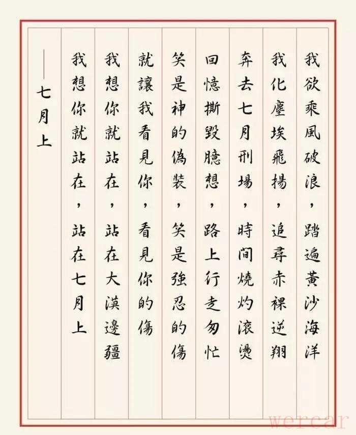Jam的歌最值得品味的大概就是歌词了吧,她说她希望每年踏入炎热的七月份,大家都会唱起《七月上》作为七月的前奏。她的声音有点独特的醇厚,似乎散发着淡淡的酒香。