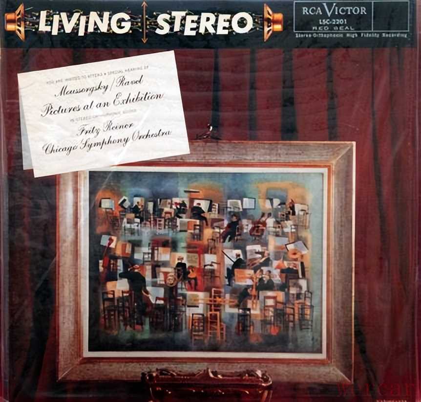 穆索尔斯基:《展览会之画》,莱纳指挥芝加哥交响乐团。是 Lewis Layton 在有名的芝加哥管弦乐厅(Orchestra Hall Chicago,简称 OHC) 录制的,1958年出版,为 James Mitchell 最喜爱的 7 张RCA在此大堂录音的唱片之一。拉威尔富有气氛与色彩的管弦乐编曲,在芝加哥交响乐团的精彩表现中,承现出一幅幅动人的音画。宽深的音像,堂音充塞,栩栩如生、甜润的铜木管,低音憾人心弦!骇人的瞬间动态、细节音效变化万千,最后在“基辅城门”壮丽多彩、音色飞扬中结束!