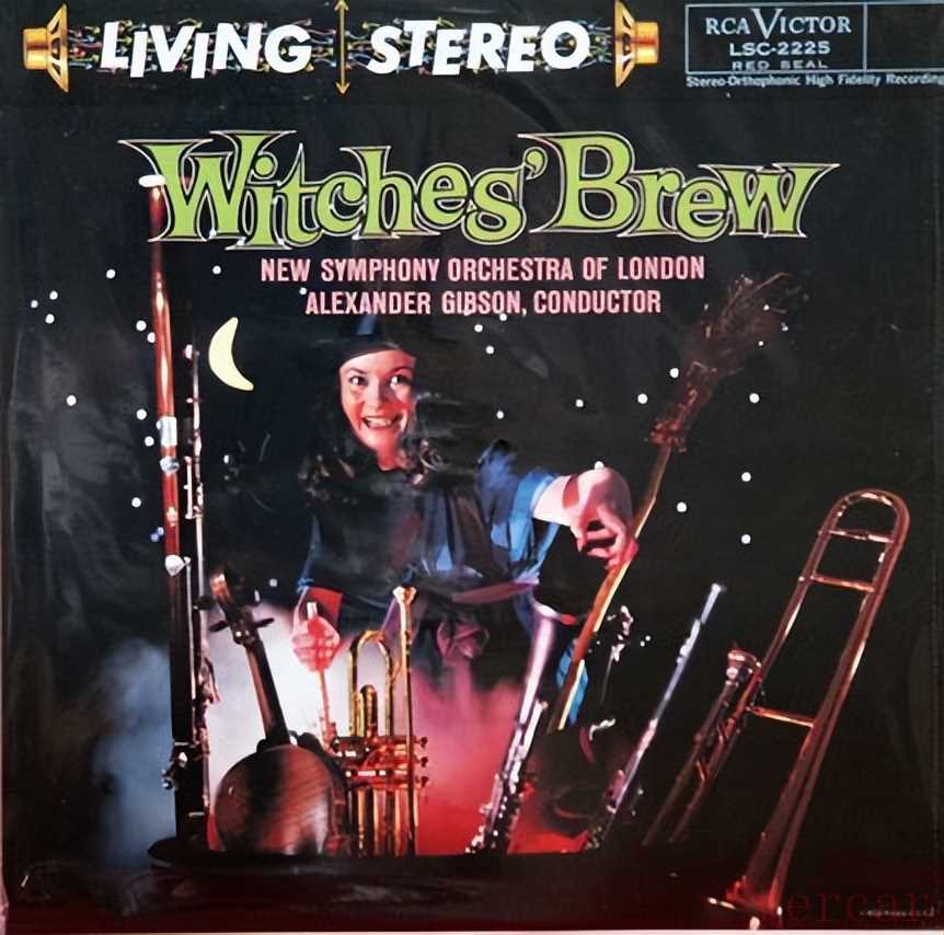 《女巫佳酿》,吉普森指挥新伦敦交响乐团。1957年 Kenneth Wilkinson 在伦敦有名的 Kingsway Hall录制的,1958年出版。这张标题为《女巫佳酿》的唱片,封面的图样为一美丽的女巫、背景的点点星光与月亮、一把扫帚提琴及各种吹管乐器,带着神秘的气息与笑容。入榜编号为RCA LSC 2225,这是 DECCA 在英国帮RCA录制的,英国RCA版编号为 SB 2020,DECCA再版编号为 SPA 175,Classic Records 的复刻片也相当精彩,原版很难找到!在此片中我们可以听到它震撼与迷人的录音,大动感与空间感,音效奇异多彩、勾魂摄魄,爆棚的力度!本片被 TAS列入HP的专集收藏榜单中。