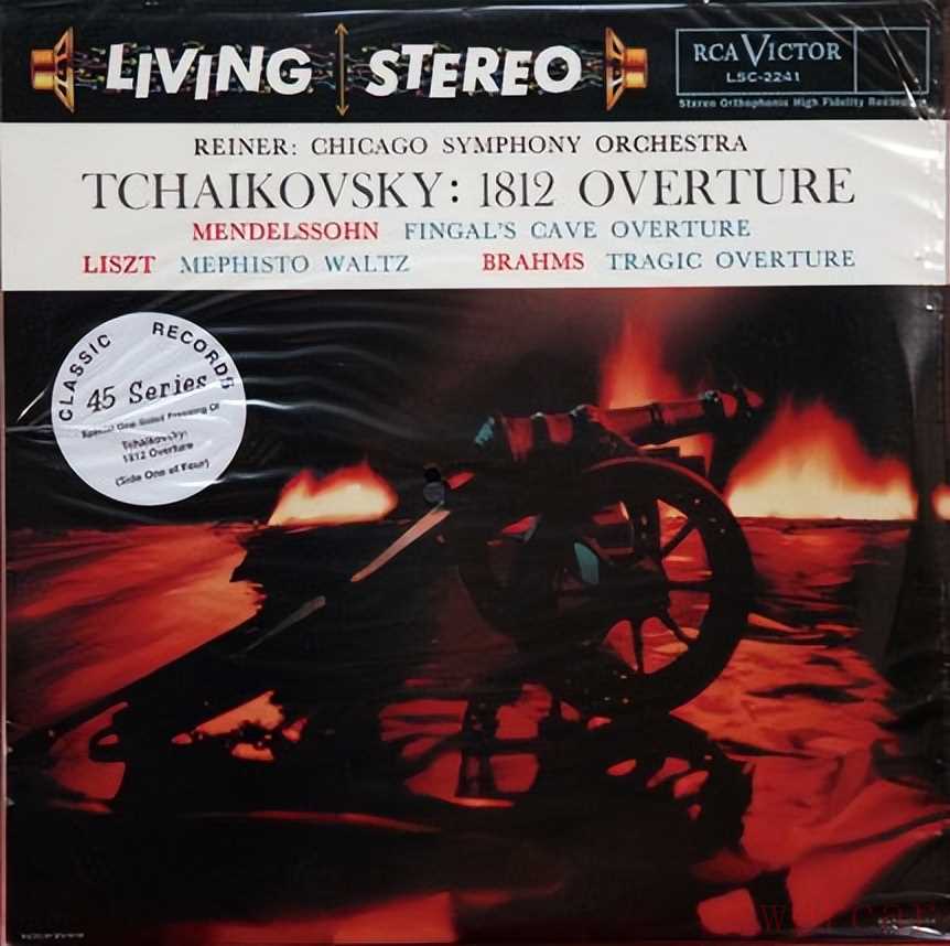 柴可夫斯基:《1812 序曲》,门德尔松:《芬格尔洞窟序曲》,布拉姆斯:《悲剧序曲》,李斯特:《魔鬼圆舞曲》,莱纳指挥芝加哥交响乐团。本片是 Leslie Chase & Lewis Layton在OHC大堂录制的,1958年出版。因市场上受到Mercury公司出版的那张,用实际的炮声录制的 1812年序曲的影响,RCA只出了头版后很快地便下架,发行量很少。此片入榜编号为RCA LSC 2241,英国版编号是 SB 2059,Classic Records 复刻了此片!