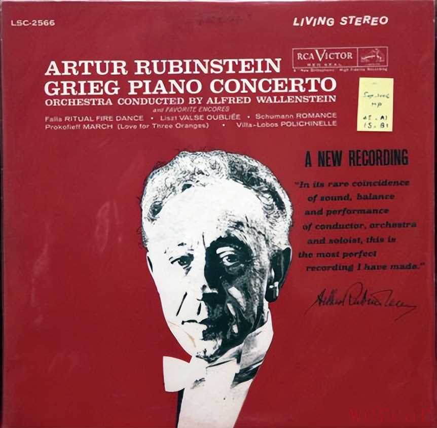 葛利格:《A 小调钢琴协奏曲》及五首安可钢琴曲,钢琴:鲁宾斯坦,乐团指挥:华伦斯坦,制作人:Max Wilcox,录音师:Lewis Layton,1961年年录制的。1942年,鲁宾斯坦在美国第一次与乐团的录音,也是这首葛利格的《A 小调钢琴协奏曲》,这回是立体声的再次录音,鲁宾斯坦与RCA录制了许多唱片都很有收藏价值,这张入榜唱片充满了浪漫主义情调,表现的诗情画意,他还自己在封面上背书,是他最完美的录音。独奏与乐团有着非常平衡的音场,背景生动秀丽,充满弹性与力度的触键,琴声清莹透明,发散着温馨与光彩!