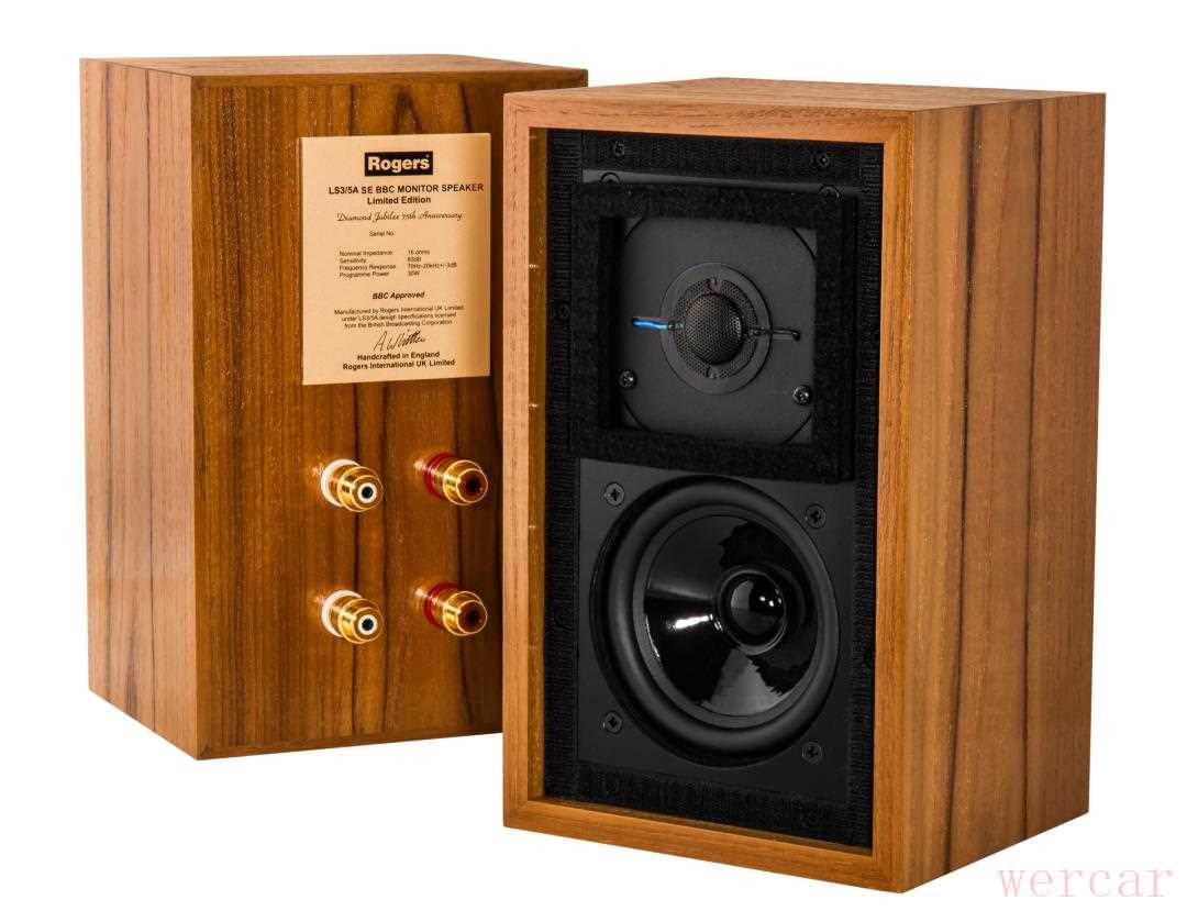NLE-1是一款小型2分频2单元有源一体化音箱,包括1只19mm铁磁流体冷却液的半球顶高音单元,1只110mm的RADIA专利振膜中低音单元,并由内置两个输出功率为50W的功放分别驱动高音单元和中低音单元,而且两路均由DSP控制,包括分频和修正,从而实现平滑的频率响应和相位特性。Rogers(乐爵士) LS3/5A SE 75周年