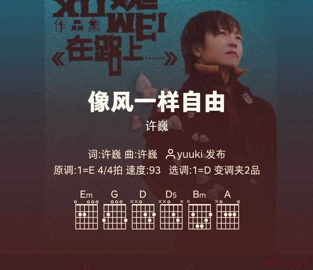 今天给大家分享的手机吉他谱是《像风一样自由》,来自许巍。有人说这首歌教会我们如何真正地理解自由和生活。