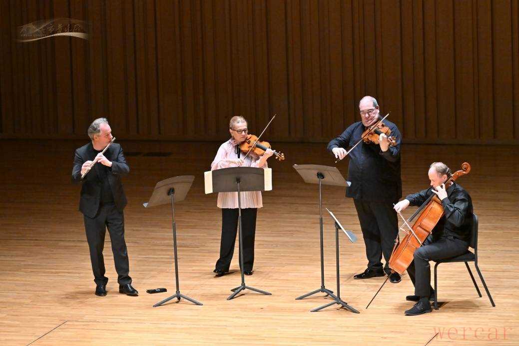 下半场,《长笛与大提琴二重奏 “喷气口哨”》带来别样风情。帕胡德的长笛模拟独特哨音,与大卫的大提琴深沉音色呼应,似在讲述奇幻故事,南美风情的神秘氛围包裹全场。终曲德沃夏克《F 大调弦乐四重奏》奏响时,音乐厅被饱满乐声填满,改编版既存原作韵味,又因长笛加入焕发新彩。在观众持续的掌声中,艺术家们加演了皮亚佐拉的《Calambre》,灵动旋律再度点燃全场热情。