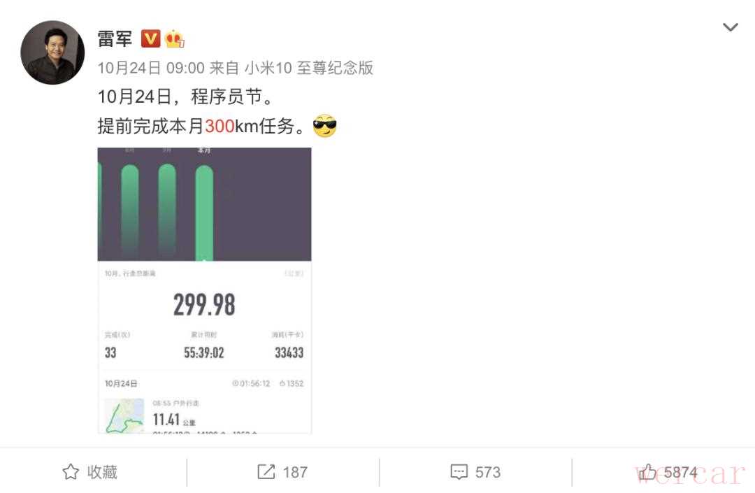 小米跑团的偶像是雷总,雷总在高强度工作之余每个月跑量保持在 300KM。