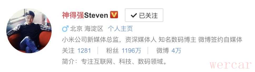 除了高管们,小米人数码 KOL 还有 @小胖小胖人间宝藏、@Edward 主教、@MIUI 小凡等,其中 @神得强,微博粉丝 1196 万,曾连续三年拿过微博年度影响力数码大 V。