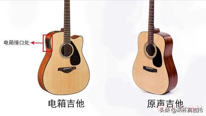 电箱款在原声款的基础上加装的了一个拾音器,相当于在吉他上装了一个话筒,把音箱的插头插在电箱吉他的拾音器上面,音就可以通过音箱传出来,起到了扩大音量,增加音色效果等作用,在不连接音箱的时候和普通民谣吉他功能是一样的。