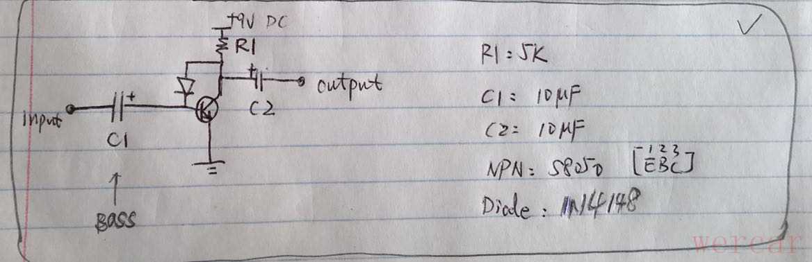 这个项目主要用于像我一样的小白入门,熟悉原件、面包板、焊接等基本知识和技能,音色很好但是音量超级大,您在使用的时候,一定将音箱的喇叭音量放到最小,然后慢慢放大,否则有可能会破坏音箱,切记切记。