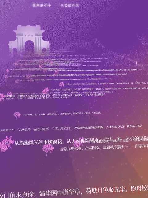 打开校庆专题网站祝福页面,仿佛打开了一扇通往二校门的星球宇宙,每朵紫荆花的背后都是深深的祝福与期盼,满满的是对水木清华的思念和向往。