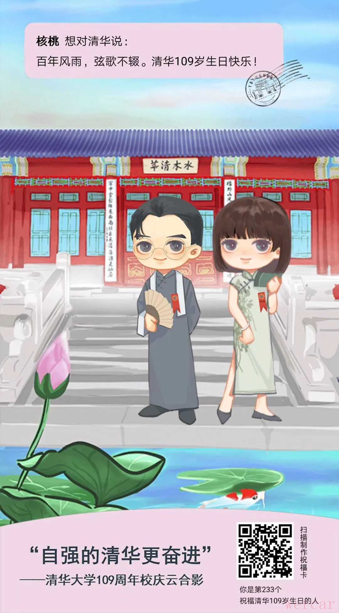 “百年积淀厚,清华正芳华。109周岁的清华会更好!”