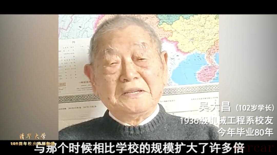“我是1936年入学的,当时清华有文学院、法学院、理学院、工学院四个学院,本科生研究生合起来一共是1200多人。与那个时候相比,学校规模扩大了许多倍,学科专业也增加了不少,对社会的影响也越来越大。展望未来、国运昌盛,祝母校109岁生日快乐!”
