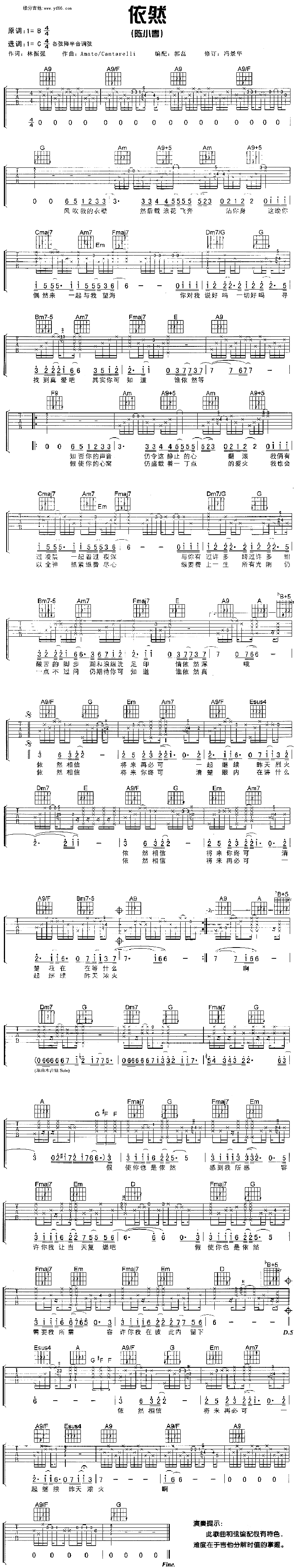 1. "节奏感":《依然》是一首节奏感较强的歌曲,弹唱时要注意节奏的准确性和流畅性。
