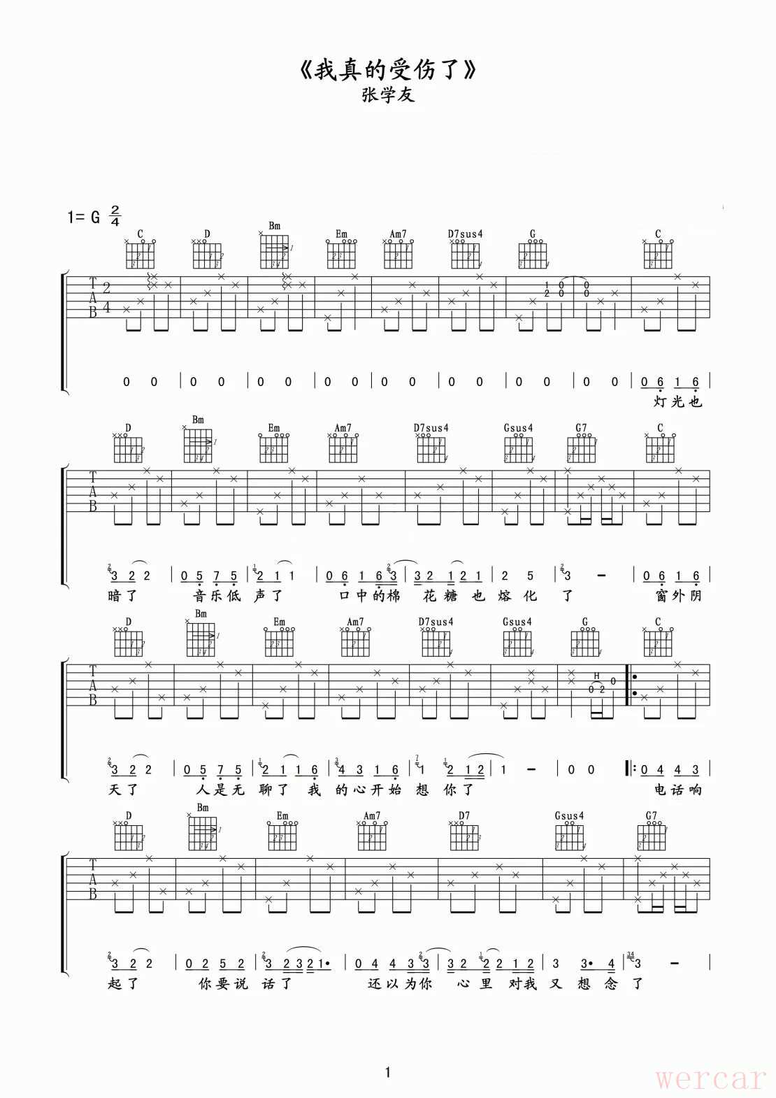 张学友经典情歌我真的受伤了吉他弹唱教程及吉