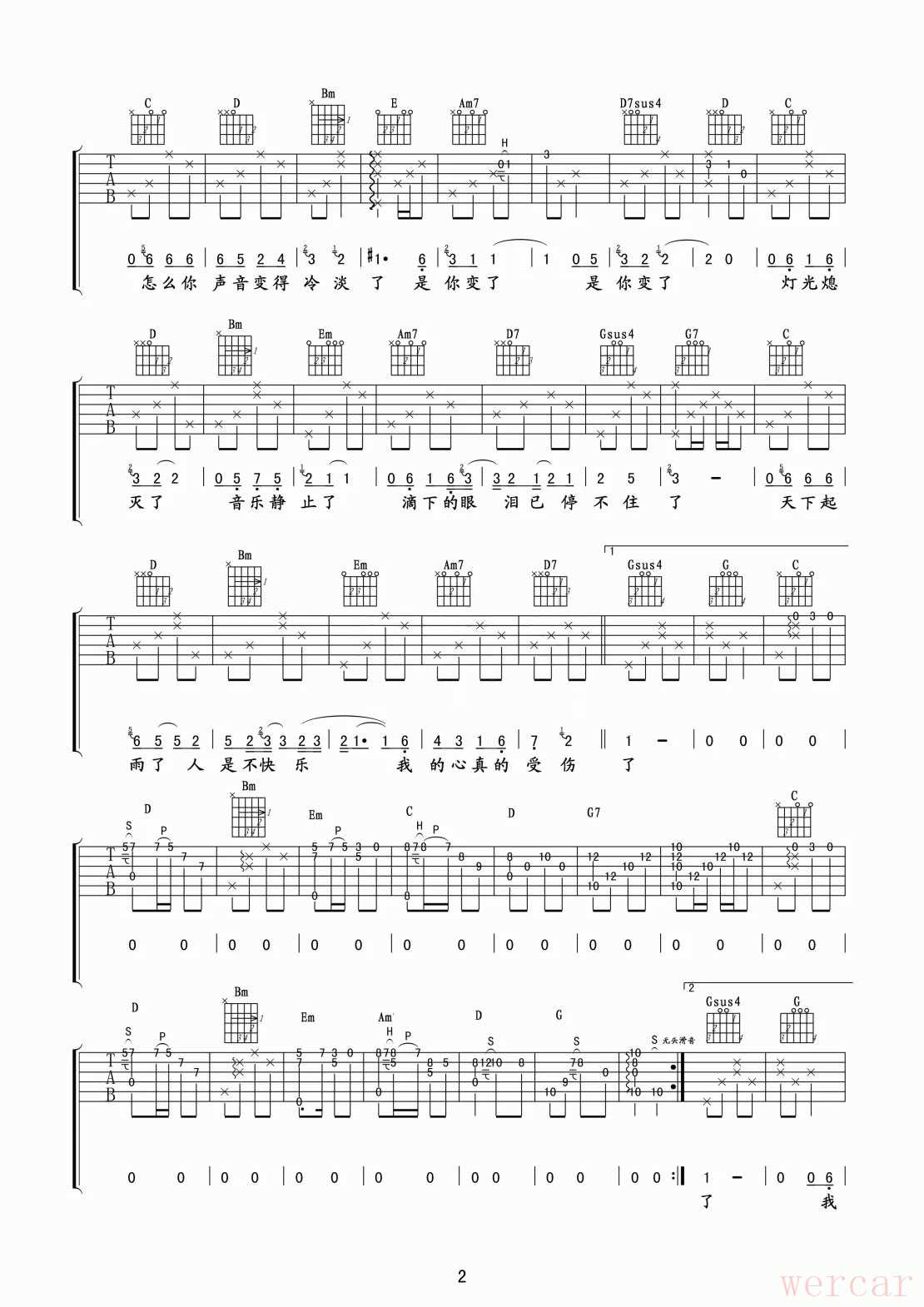 周传雄经典情歌我的心太乱吉他谱,弹奏浪漫旋