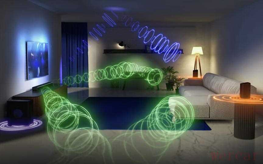回音壁和书架音箱本身是不存在着直接竞争关系的,笔者回音壁和书架音响都有,二者侧重点非常不同。同价位,书架音箱的喇叭单元更大、内部功放用料也更好,所以其音质输出更优秀,比较适合常听音乐的小伙伴。但因为书架音响只有左右两个箱体,所以其一般只能实现2.0声道音效。因为回音壁更侧重于多声道音效的展示,所以回音壁会配置很多喇叭单元,虽然喇叭小,但因为多,而且各种方位都有,所以其多声道音效表现更好,像三星的Q990系列,一共配置了二十余个喇叭单元,在内置音频系统的解码下,可分别为左、中、右、天空、左环绕、右环绕、左侧环绕、右侧环绕、低音炮输出独立的音频信号,最终让用户体验到声音从四面八方包裹而来的感觉。