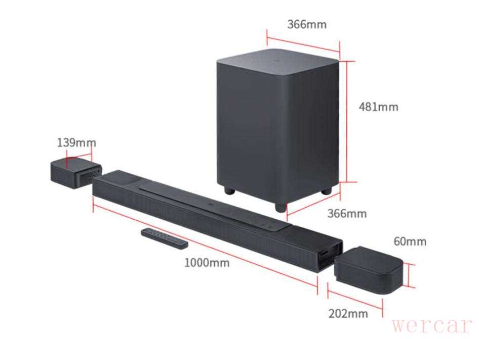 功率输出:峰值功率325W(低音炮100W、后环绕25*2W、本体25*7W)