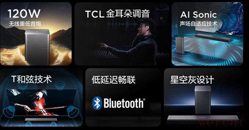 尽管TCL S55H受限于成本,没有配置天空声道和后环绕,本体喇叭也就用了两个,但就 220W的大功率、杜比全景声的物理解码及DTS Virtual:X虚拟音效的支持,算是百元价位里独一份的存在。另外它还具有AI声场自适应技术;和TCL电视搭配能实现类似索尼电视+索尼回音壁那种电视喇叭+音响协同工作;接口上拥有HDMI(eARC )、光纤、AUX和USB,支持蓝牙5.3无线连接等。如果你想体验次世代音效带来的震撼,那千元价位目前唯有TCL S55H值得选购。