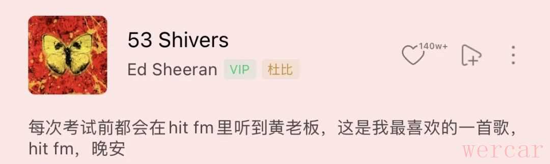 另外,在QQ音乐的互动歌单《 分享你与Hit FM的第一首歌 》中,各位听众也讲述了自己和 Hit FM的故事。当熟悉的旋律响起时,也会让大家瞬间想起收听 Hit FM的美好时光。