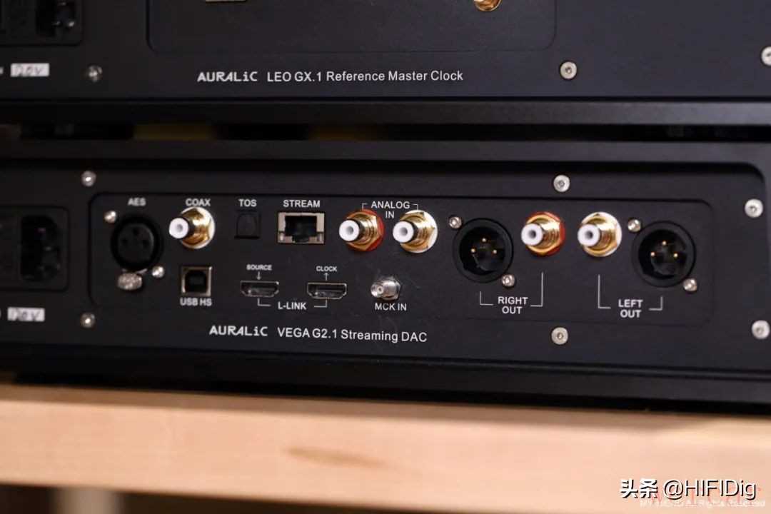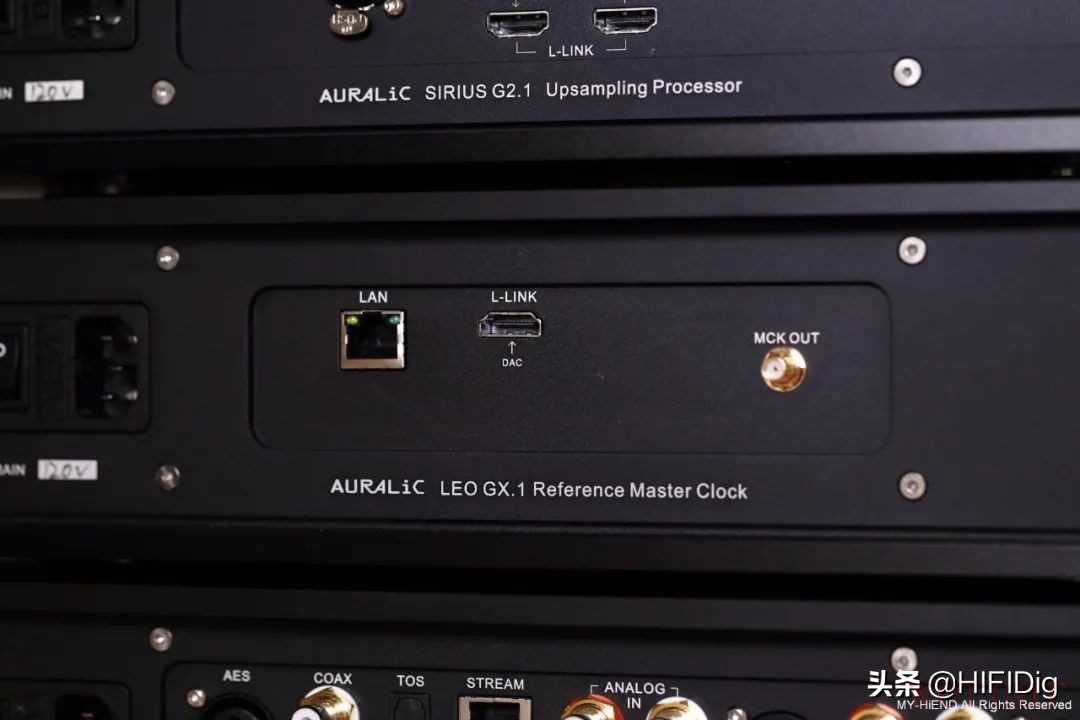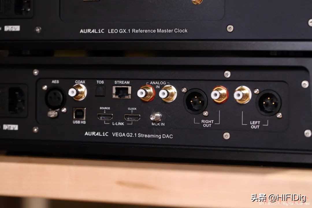 照片上方为Leo GX.1主时钟,下方为Vega G2.1数位类比转换器。