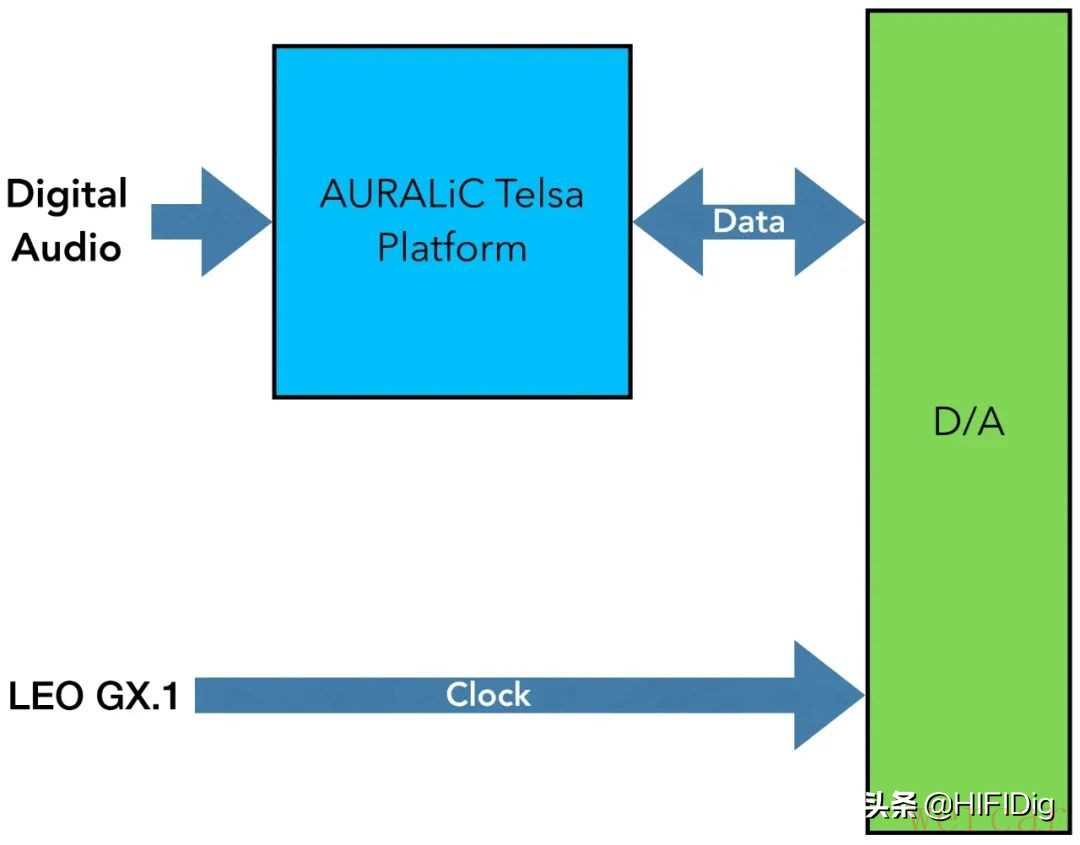 一般DAC在外接独立时钟时会使用相位锁定回路电路(phase-locked loop circuits, PLL)来锁定更精确的外部时钟讯号,但此电路会产生噪声,而且会受到DAC内部时钟影响。而Auralic Vega G2.1与自家时钟Leo GX.1搭配使用时,能使Vega G2.1直接略过内部DAC时钟而直接接受Leo GX.1的时钟讯号,不须使用PLL也不受内部原本时钟电路影响。因此在连接两者时除了时钟线以外,还会使用Lightning Link连接达到彼此的沟通控制。