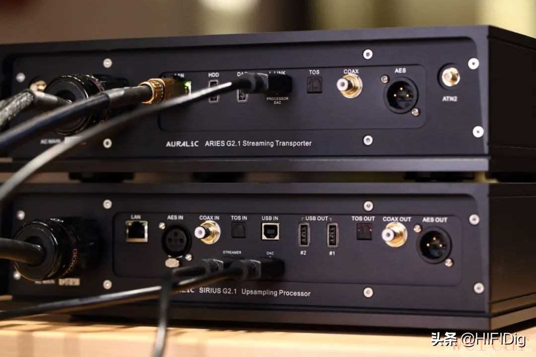将Auralic Aries G2.1网路数位串流播放机与Sirius G2.1升频处理器一同使用,以Lightning Link相连接。Sirius G2.1的连接为一进一出,接收自Aries G2.1的讯号后输出给Vega G2.1数位类比转换器。