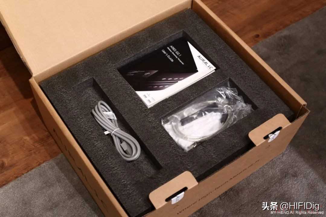 每部器材的包装非常妥善,上下各用一层全尺寸的高密度泡棉包覆,顶层有说明书与配件,四部器材的配件稍有不同,除了电源线以外,Aries G2.1附有USB、天线,另外三部附有Lightning Link使用的HDMI线,Leo GX.1则另外有时钟线,其余包装都相同。