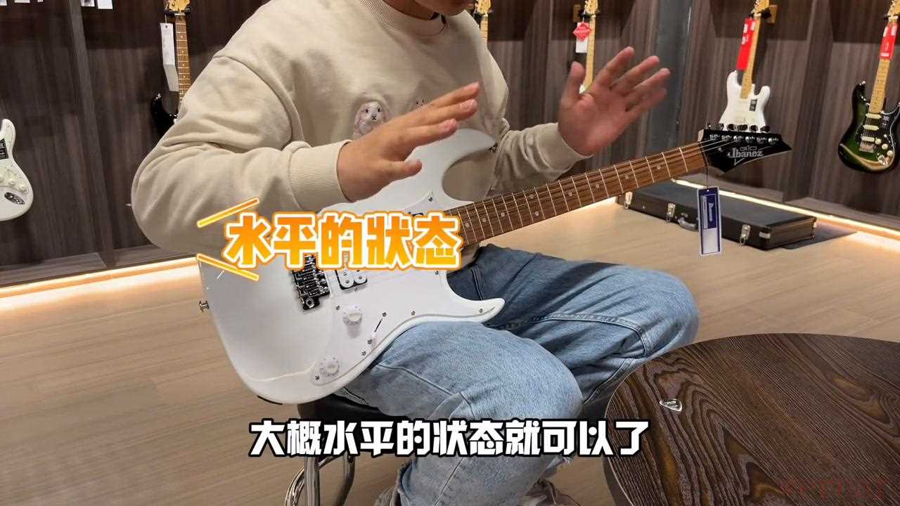·练习到一定程度,练到什么程度?当你这样抱着吉他的时候琴头不会往下掉,或者琴头也不要往上,这样角度斜过来太高,正常保持一个水平的状态就可以了。