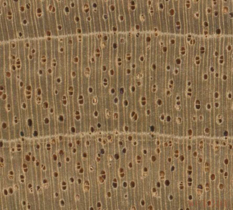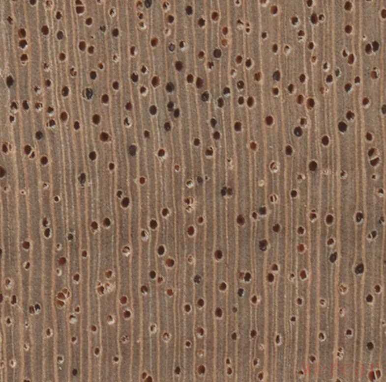 顺便插播一些我在网上学到的识别 Swietenia知识:看端面(endgrain):Swietenia 往往能看到“边缘薄壁组织(marginal parenchyma)”,表现为每个生长轮边界有一圈浅色细胞带,像年轮一样。看平切面(flatsawn)上的“波纹/涟漪纹(ripple marks)”:很多 Swietenia 会出现一种很细微的“整齐排列的小波纹”,来自“层状射线(storied rays)”。有波纹更像 Swietenia;没有波纹则无法下结论。(其实还有一种墨西哥桃花芯Swietenia humilis,但是用的制琴师实在太少就不讨论了,它树更小,所以木料更容易有节疤、纹理不规整,出材尺寸也小。)最重要的是:不要用颜色和重量来判断。同一树种也可能颜色深浅差很多、密度差很多。