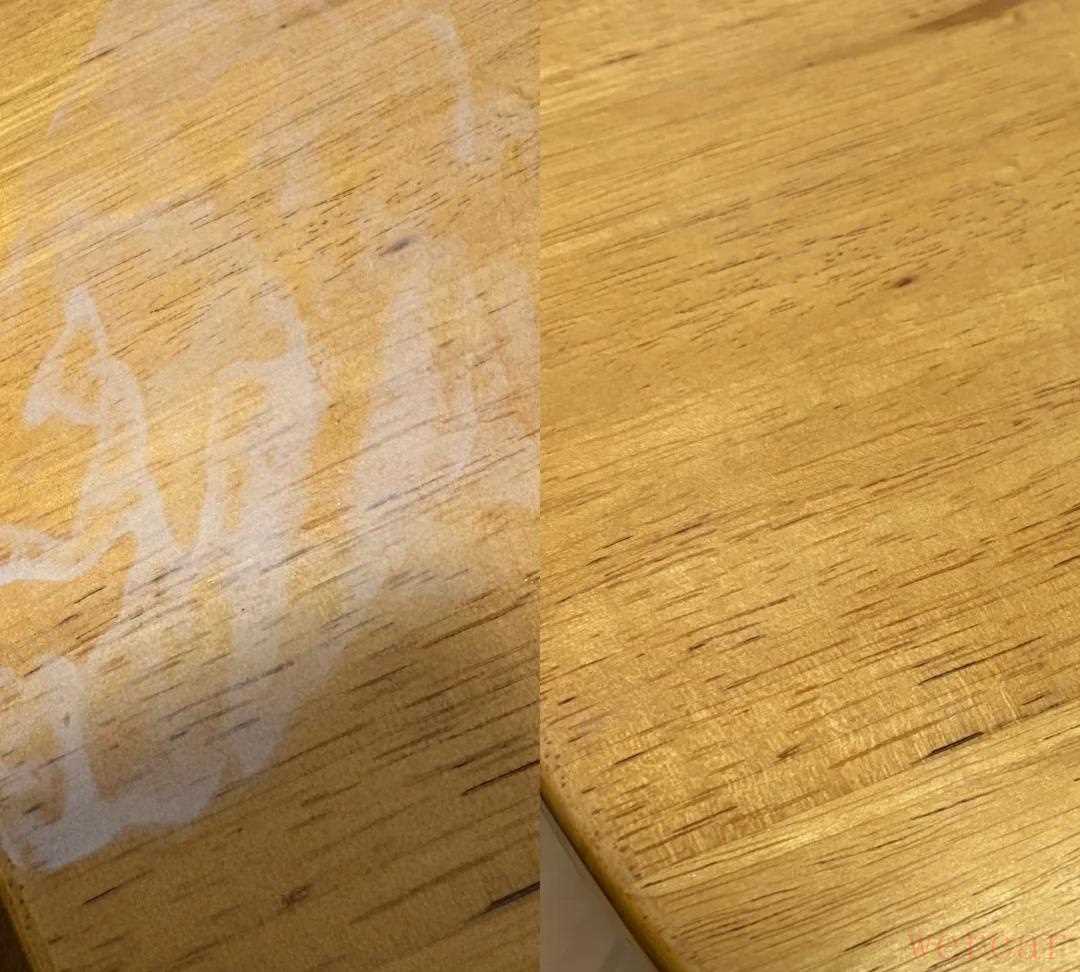 还有人擦家里的木质餐桌,转天桌面多了好几个白斑,师傅说这是漆面被酒精脱脂了,根本没法修复。