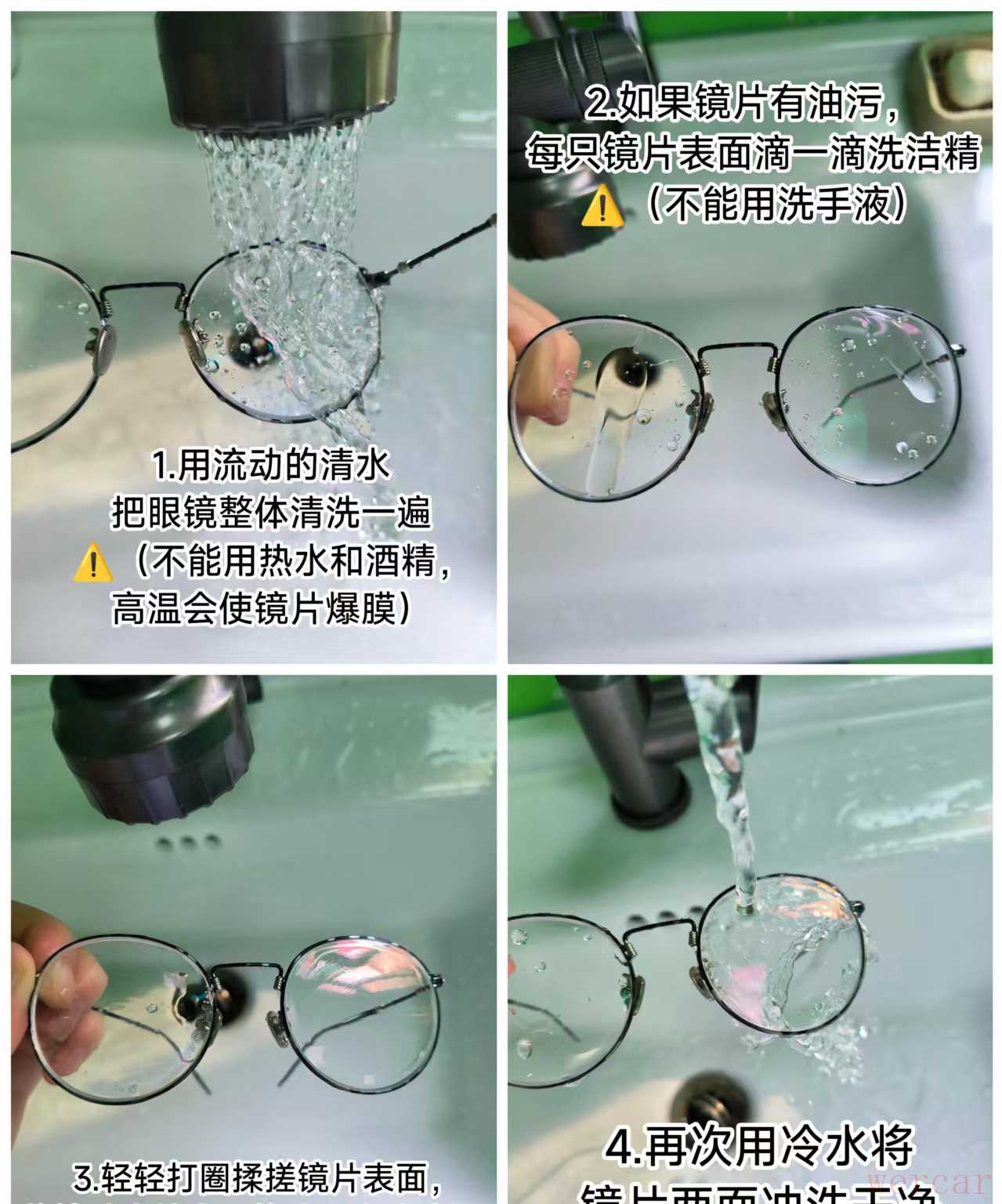 眼镜片就用专用清洗液或中性洗洁精,冲干净再擦干。