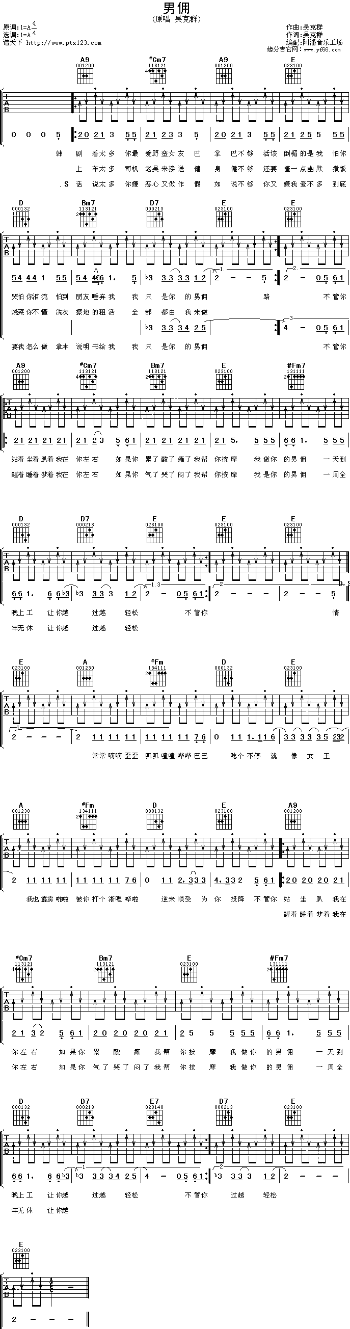 吴克群的《男佣》是一首非常受欢迎的歌曲,以下是关于吉他弹唱时需要注意的一些问题: