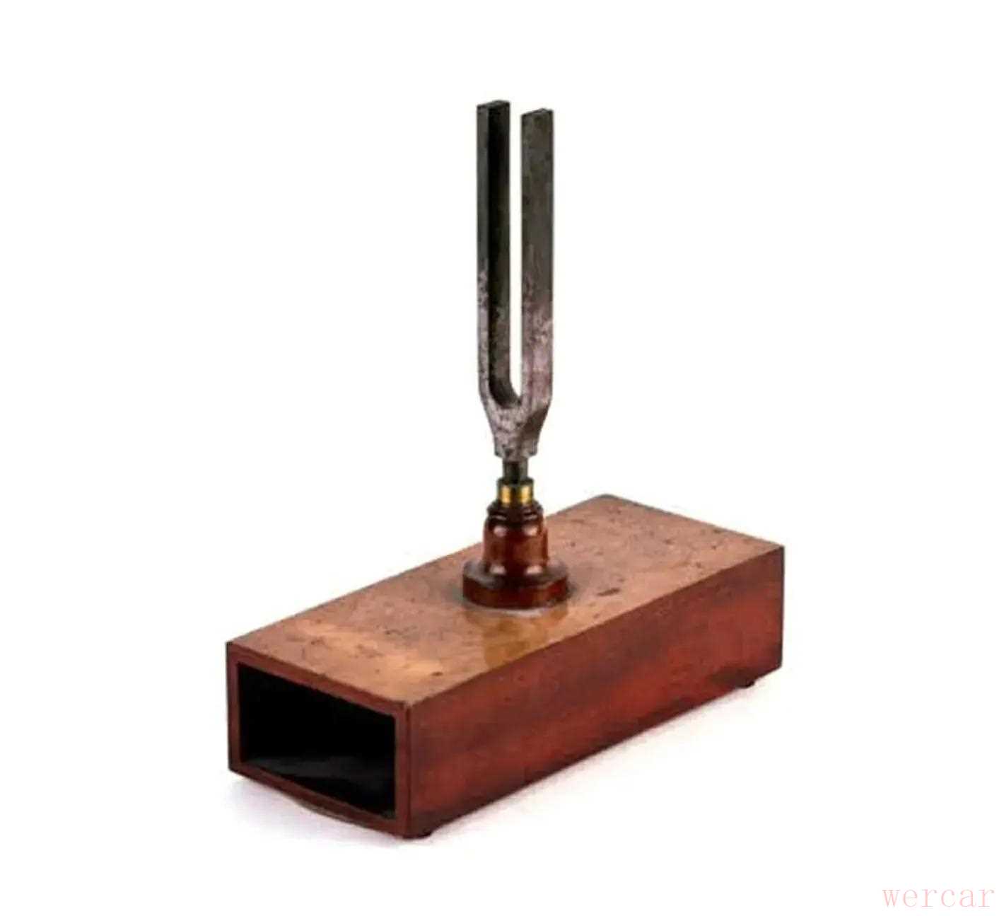 上面就是一个音叉。音叉多是用金属制造的。敲击音叉时,音叉振动会发出声音。音叉的频率非常稳定,声音的音调也固定不变。不同大小的音叉频率不同,声音音调也不一样