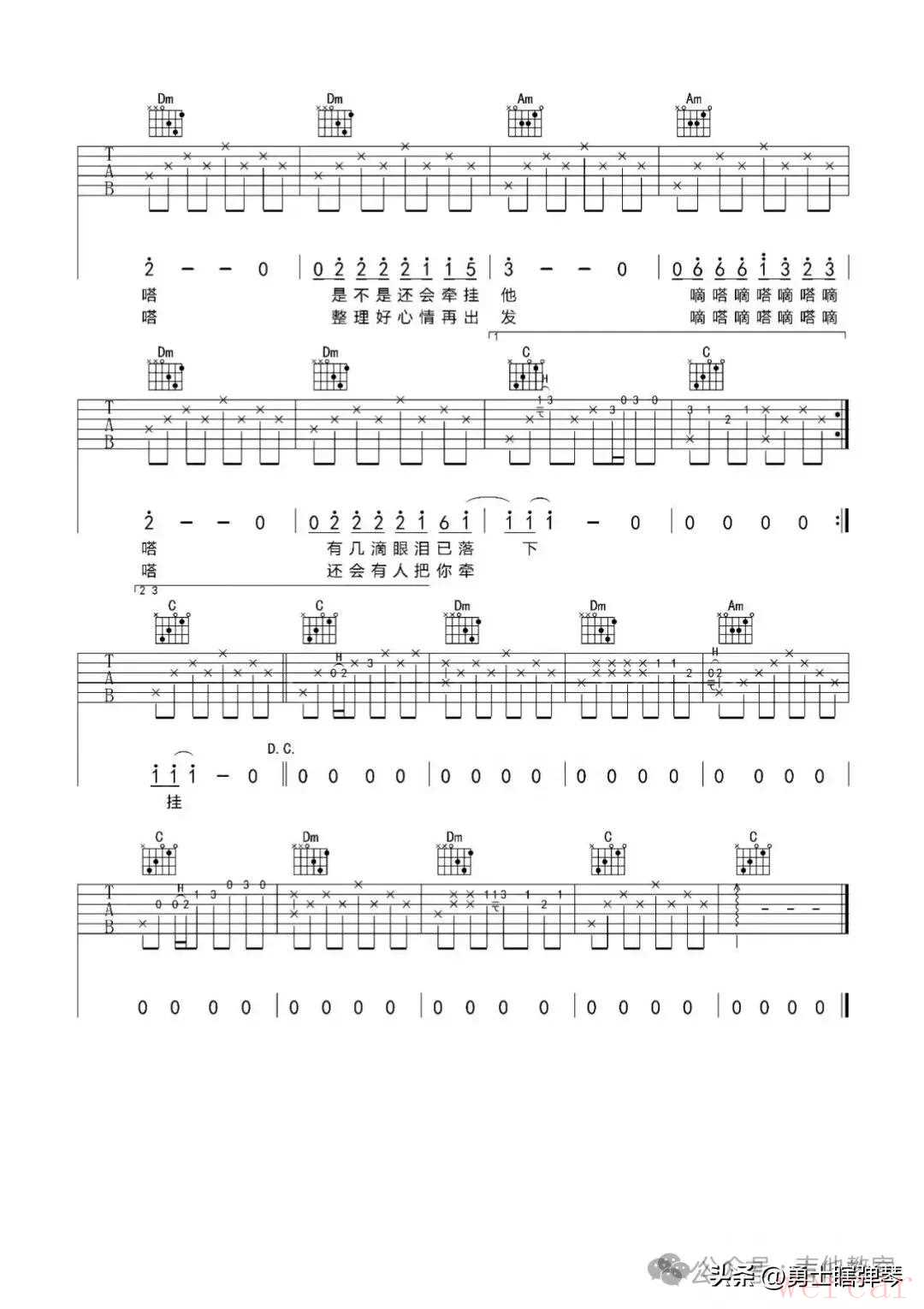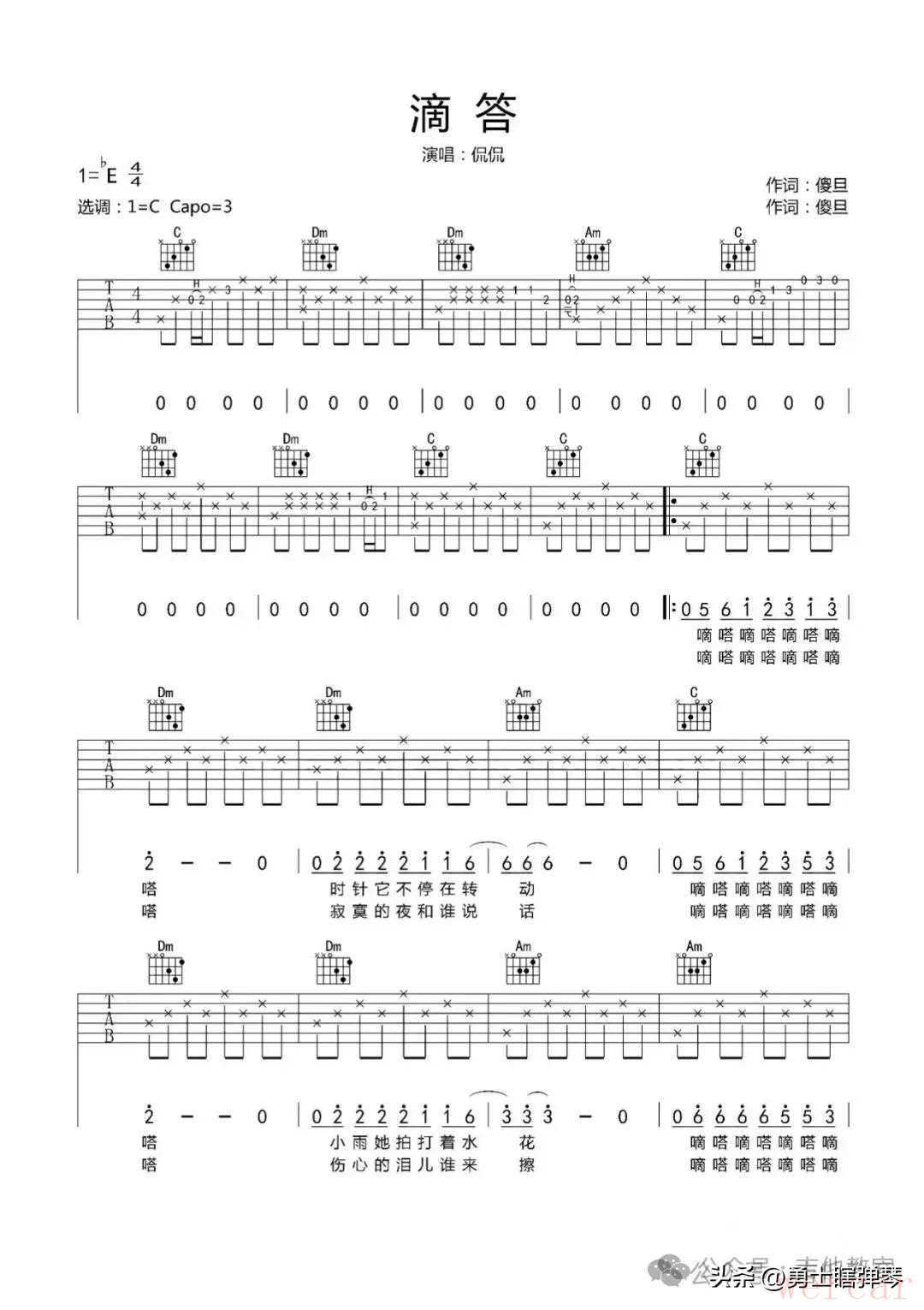 - (图:示例歌曲吉他谱片段,如侃侃《滴答》的吉他谱)