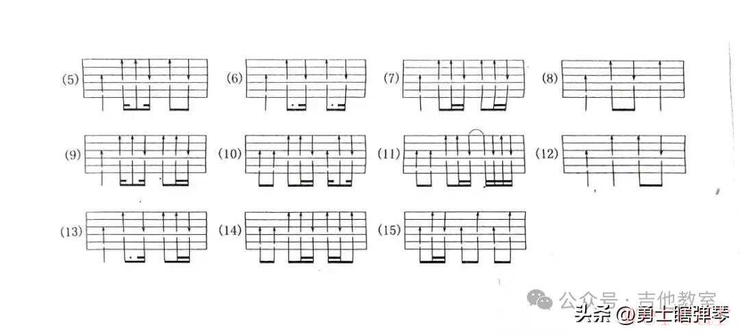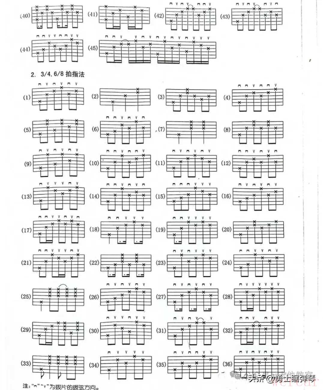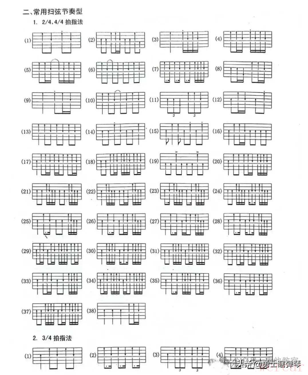 - (图:常用扫弦节奏型与分解节奏型总汇图表)