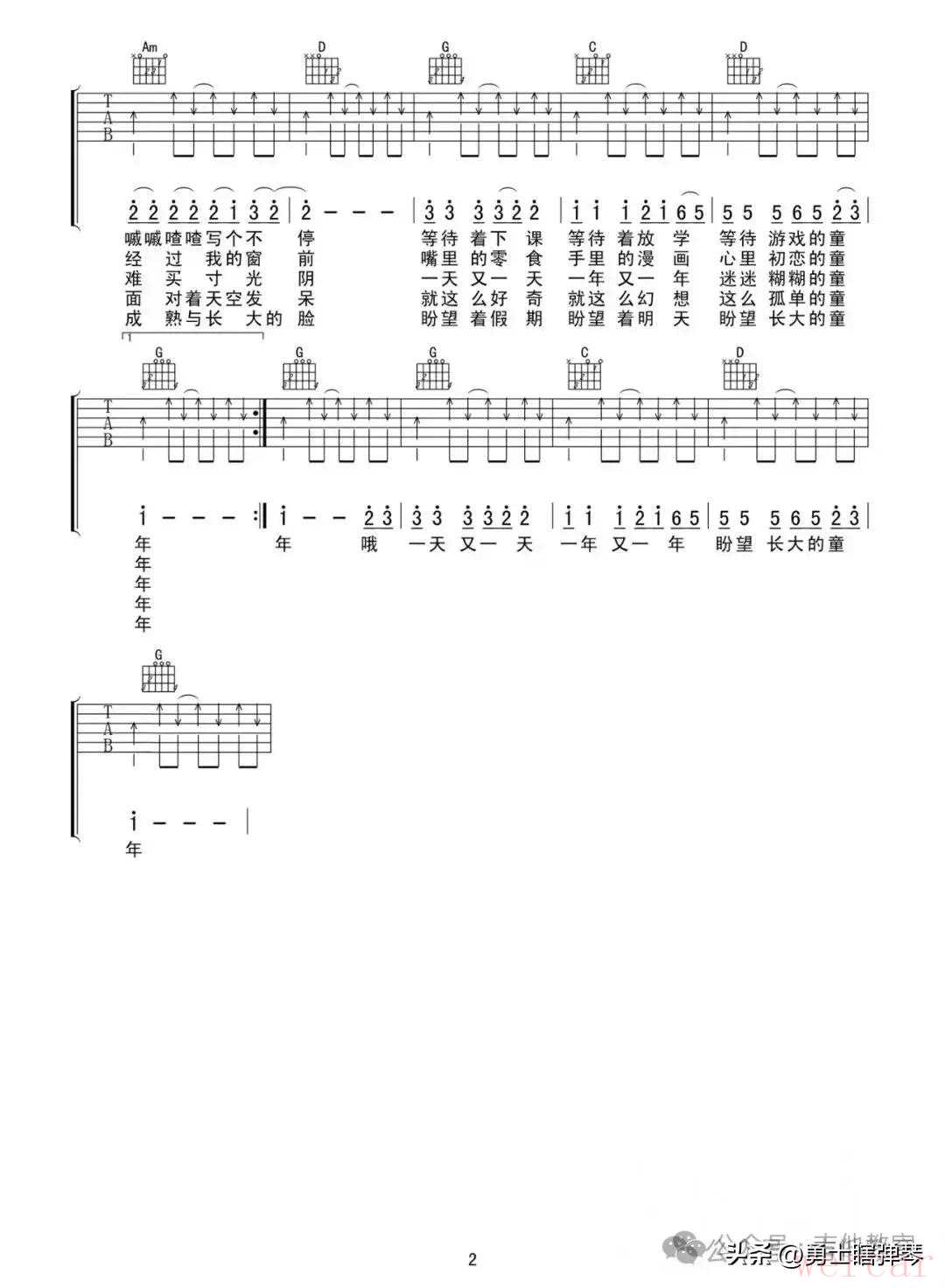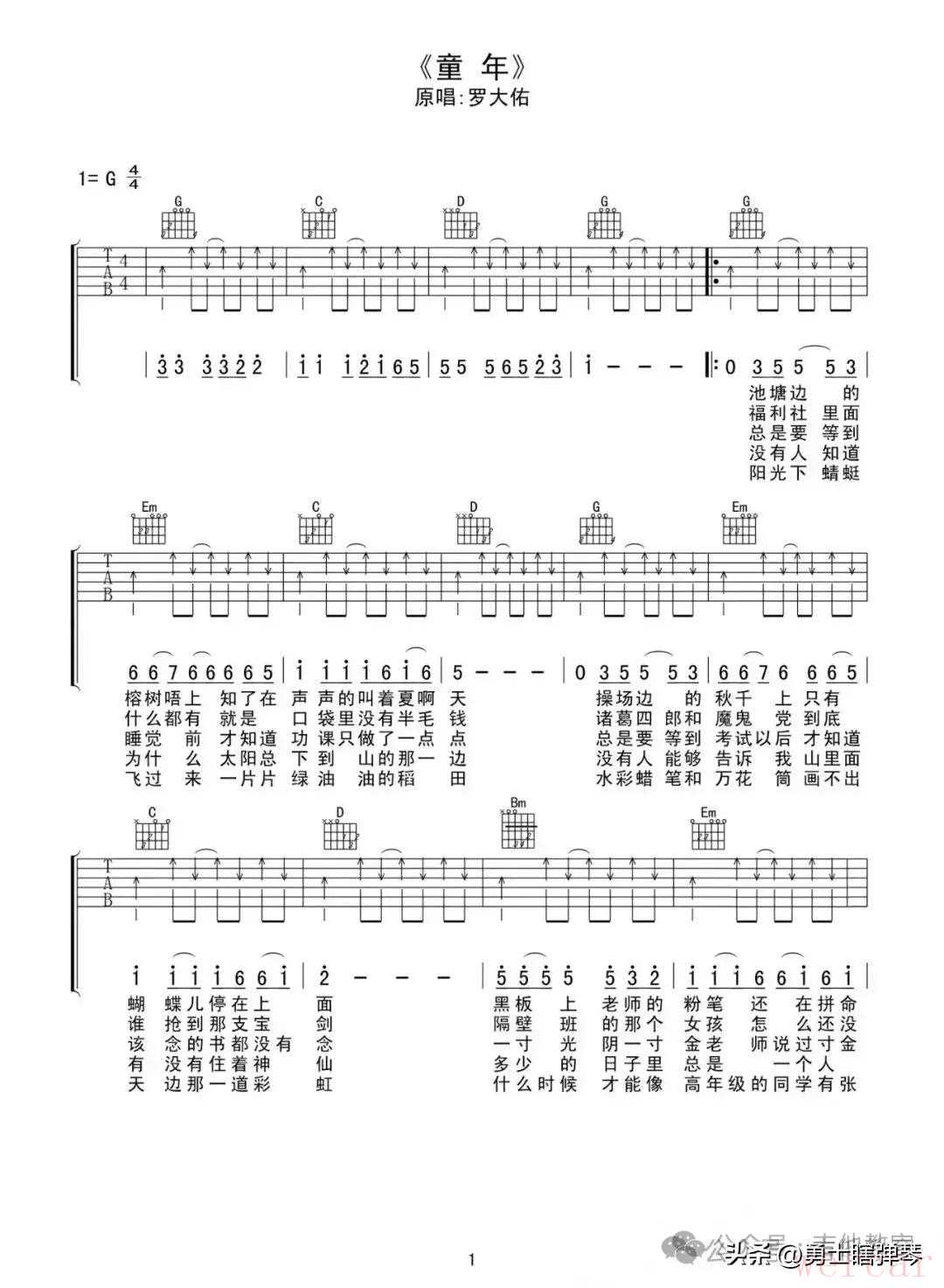 - (图:示例歌曲吉他谱片段,如罗大佑《童年》的吉他谱)